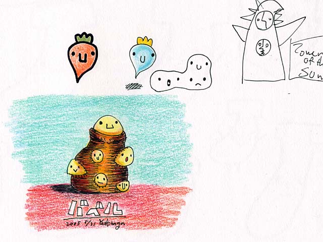 まんが(54)の元になったイラスト。すあまのおなかがださいですね。