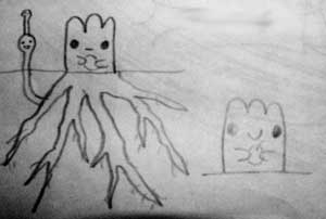 | 特徴 | 地面に半分埋まった状態になっている。 地下には相当根が張っているので動けない。 横の鳥っぽいものも田口の一部。