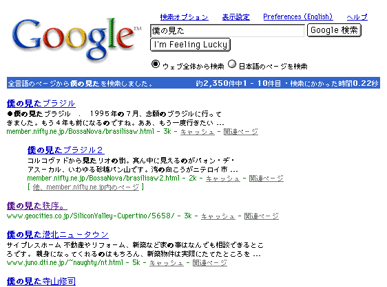「僕の見た」で検索すると現在3位です。ライバルは僕の見たブラジル。