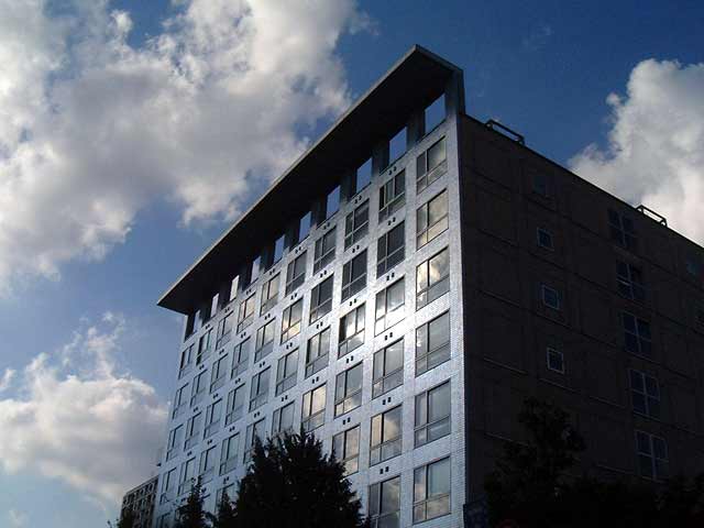 最近のミラービルはプリズムで虹色に輝くものもあります。