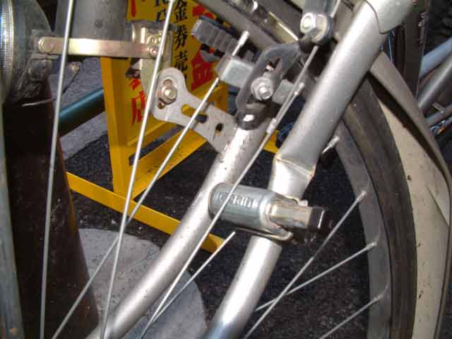 フロントフォークがぐにゃりと曲がって、前輪が全く動きません。