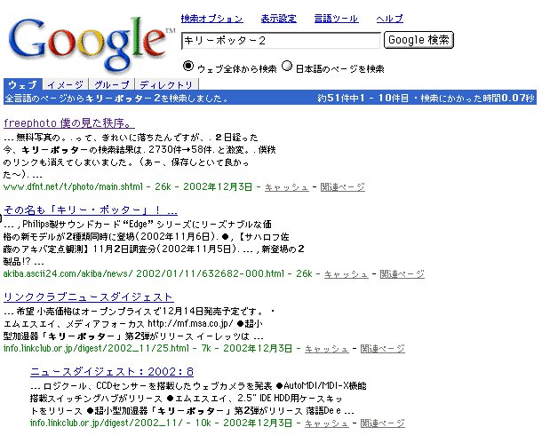 ■15分前の更新も反映する検索エンジン(テスト版)