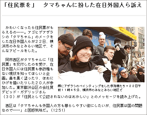 先日のニシ・タマオさんへの住民票発行を受けてこんなデモが。 (THX>朝日新聞)