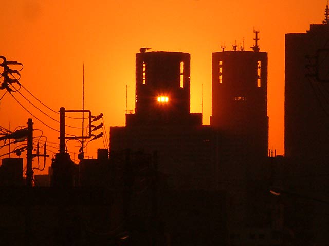 ビルの後ろに夕日が入ってしまって、「あーあ、残念」と思っていたら