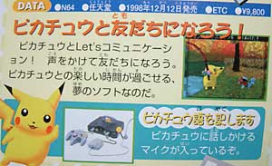 「NINTENDO 64 VRS(音声認識システム)」を使うと、 人の言葉をピカチュウにわかる言葉に変えてくれるよ!