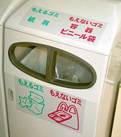 「燃えるゴミ」と「燃えないゴミ」に分別して出す。