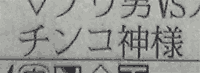 Gコードのない新聞(東スポなど)では 「チンコ神様必勝法公開」 というますます「ありえない表記」になってます。 (THX>Yu-zくん) |