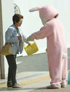 必死にティッシュを配るも、無視され続けている。