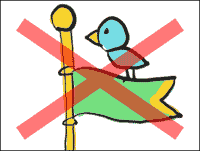 たなびく旗に鳥がとまるのはどう考えてもおかしい。