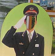 駅を歩いていると、「顔ハメ」パネルを発見した。
