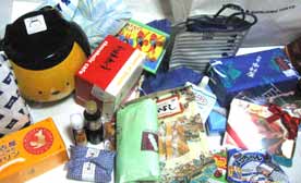 パスポート、理髪の用具や、洋服(直)など、変わったものが並んでおります。
