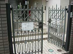 あるアパートの前を通りかかると、大きく開いた門の横に