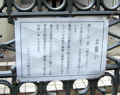 管理人さんの張り紙にもあるとおり、この扉を閉めておかないと