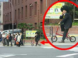スーツだけど巨大アフロの人が自転車に乗っていたよ☆