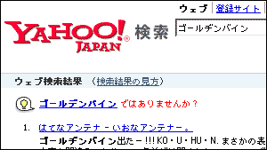 25日のネタ、Yahooで「ゴールヂンバイン」と検索したら、 (THX>にまめさん) |