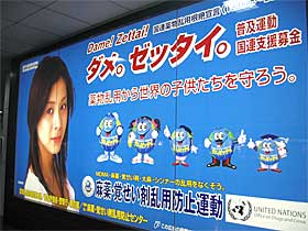新宿駅の地下にある「麻薬・覚せい剤乱用防止」の大きな看板。
