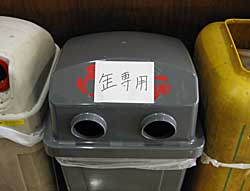 「缶専用」と書きたいと思うのだが、実に惜しい「缶」の文字。