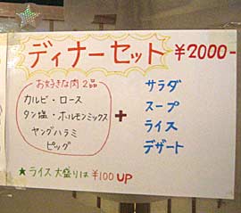 カルビ・ロース・タン塩など、よくある牛肉のメニューが並んだ後、