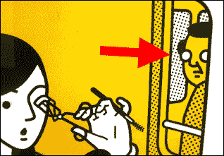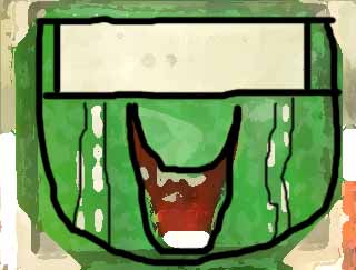 カメレオン的に考えるとこれが目っぽいが、 いずれにせよ顔の上半分がない感じの怖さ。 こんな人に会ってしまったら、僕はきっと逃げてしまうことだろう。