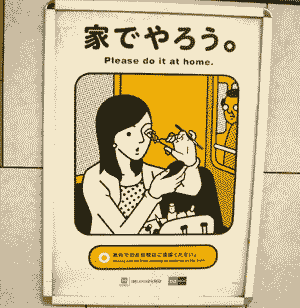 電車に出ていた「家でやろう。」というポスター。 一見、「電車の中でメイクをしないで下さい」 という注意書きに思えるが、僕秩として気になるのは当然コチラである。