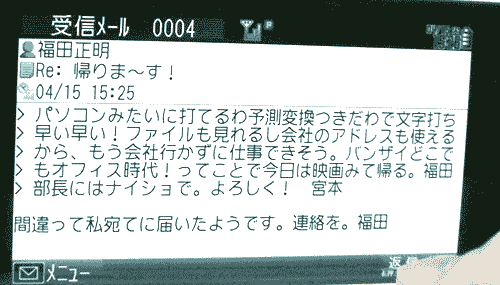 ・ ・ ・ ということで、 メールの返信がおかしい部長と、 内容も言葉遣いももっとおかしい女性部下。
