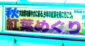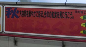 オレンジっぽい赤地に赤文字で書き、 極端に読みにくくなっていた「紅葉めぐり」の文字。なんだこれ。