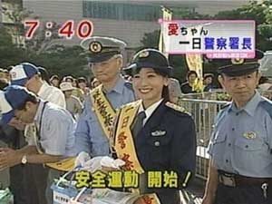 著名人が招かれて一日だけ署長を務めるというこのイベント。 多くのマスコミが来るため宣伝効果も高いし、タレントさんも見ることができる。 おまけに市民とのふれあいもでき、好感度も上がると言うすごい作戦。