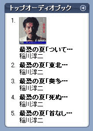 まさかの上位独占。 なんと稲川淳二さんの「最恐の夏」というシリーズが 1〜5位全てを独占しているというすごい状態。 最恐、死ぬ、首なし、などオリコンランキングでは考えられない文字が並ぶ。