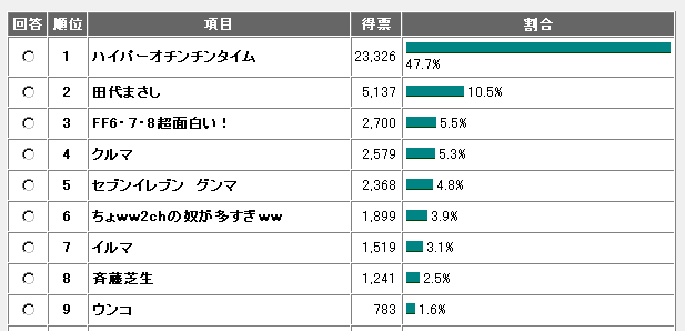 順位に爆発的変動。 最恐の夏を抑えて、圓楽さんと歌丸さんが圏外より登場。 この波乱は崩壊への序曲(ウヴェルテュール)なのか・・・!!