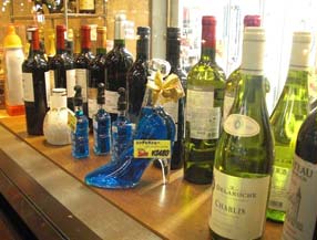 有名な銅像や原材料のブドウを模したボトルは時々見るが、 シンデレラシューはまさかのクツ。 クツからお酒を飲ませるというのはどうなのか。 しかも青い。