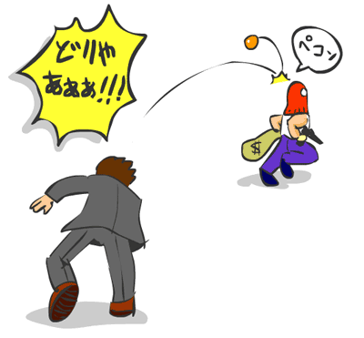 仮に僕にチャンスが来てペイントボールを投げたとしても 強盗に当たるとは限らず、通行人や壁、道路に当たるかもしれない。 その場合、落ちない汚れのせいで訴えられてしまう可能性だってある。 訴えられるのは絶対に嫌だ。