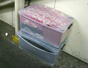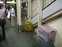 初めは駅の工事道具?だと思っていたのだが、 近くによって見るとまさかの収納用具。