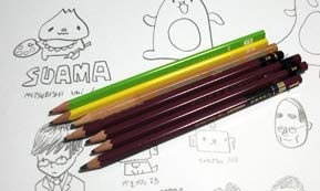 世界堂でたくさん鉛筆を買ったよ。 一番書きやすかったのは、きみどりの「かきかた鉛筆2B \50」でした。安さバンザイ。 >挨拶 ヨシナガです。