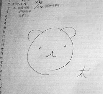 全員まじめに書いている中、僕のページはまさかの犬。 名前、生年月日、電話番号を書いたところで力尽き、 出身高校を書いたところで文字は終わっている。