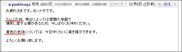 今日メールを書いた全員に 「メールの返事が遅くてすみません」って謝ってるっすよ。 >挨拶 ヨシナガです。