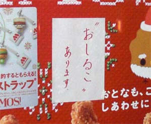 あのネタは チキンやバイト募集の上に「おしるこ」という手書き文字を貼らなければ、 もっとお客さんは店に入りやすいのにな・・・ というお話だったつもりなのです。