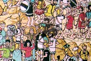 ■ 僕の考えたウォーリーをさがせ! 2 (この記事への固定リンク) 昨日の更新で使った「ウォーリーをさがせ!」と言うのは、 いろいろな国の人ごみの中から「ウォーリー(上)」を探すクイズ絵本のことである。