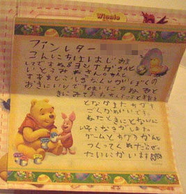>挨拶 ヨシナガです。 今日はおたよりを紹介します。