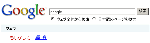 つまり、「google」と検索した後に全く関係のないワード、 例えば「鼻毛」をみんなで検索すればこういう風になる可能性がある。