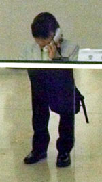 赤い光が当たっているのだと思いたいが、Yシャツは普通に真っ白だ。 というか、これらはATM操作時の監視カメラ画像だから そもそも顔全体に赤い光は当たらないだろう。