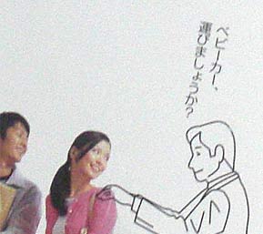 まず、はじめに目が行くのが 二人の登場人物が左右に分かれたデザインが印象的な広告。