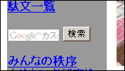 ちなみに、 とっても便利なこの機能。 Googleさんの「Googleカスタム検索」というサービスを 使わせていただいているのですが、 僕の力ではうまく横幅を調節することができず、