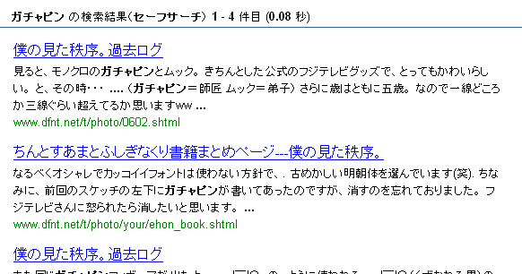 例えば、 「昔僕秩でガチャピンのネタがあったなぁ・・・」 という時は検索枠に