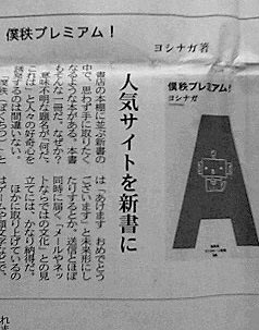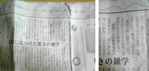■ 突き進め!意味不明ロード! (この記事への固定リンク) 青森の新聞に僕秩プレミアム!の書評が載っているという情報をいただいたので、 さっそく見てみることにした。 (THX>まみさん、麺具さん、他!)