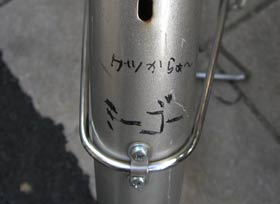 ■ 未知との遭遇 (この記事への固定リンク) 以前大阪に行った時、道端の自転車に書かれていた文句を見て驚いた。