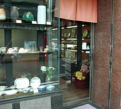 高級な焼き物をたくさん扱う食器屋さん。 その入り口を見て驚いた。