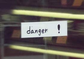 先日ネタにした「danger!」とだけ書かれた せともの店のドア。 たくさんお便りをいただきましたが、多数派のご意見はこうでした。