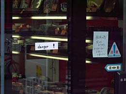 入り口に張られた謎の張り紙「danger!」。 普通は「自動ドア」「営業時間」などを書く所だと思うのだが、 まさかの危険警告(それも英語)だ。