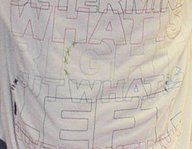 全部は読めないのだが WE WILL NOT DETERMINE WHAT IS RIGHT BUT WHAT IS LEFT ALUTA CONTINUA と、書いてあるらしい。