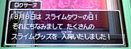 ドラクエをやっていたら 「8月8日は スライムタワーの日!」 と書かれていた。